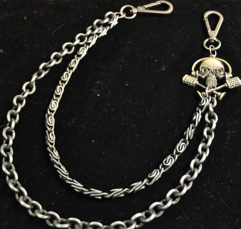 Style: Badass Men's Silver Skull Double Long Wallet Chain Pants Chain Biker Wallet Chain For Men