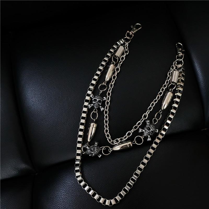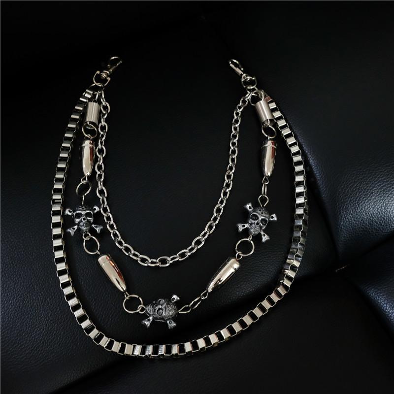 Style: Badass Men's Skull and Bullet Triple Long Wallet Chain Pants Chain Trendy Biker Wallet Chain For Men