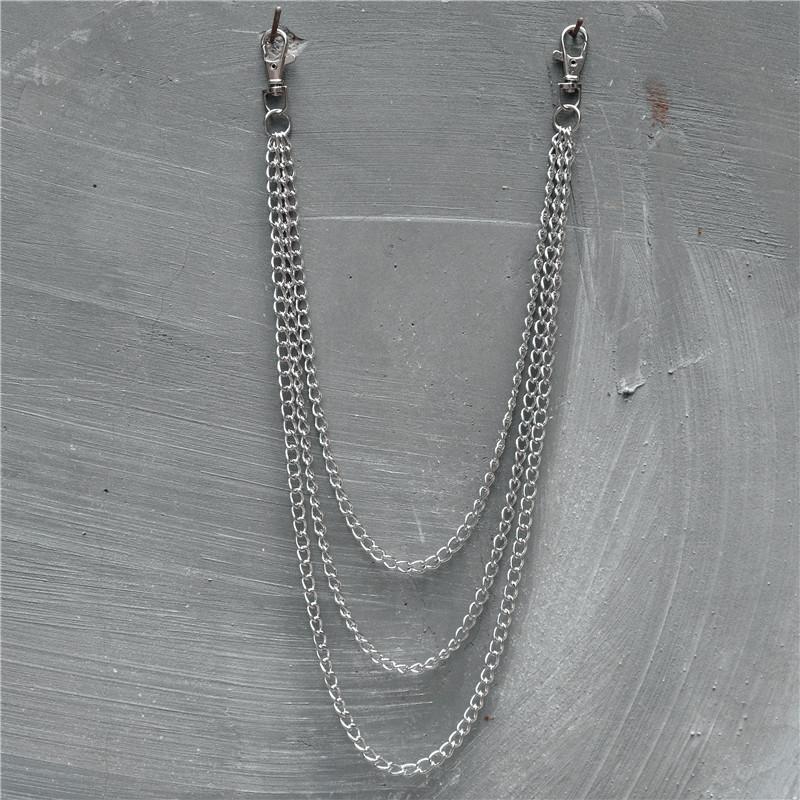 Style: Badass Stainless Steel Mens Triple Layer Long Pants Chain Wallet Chain For Men