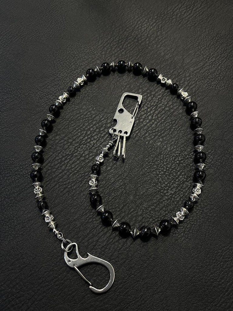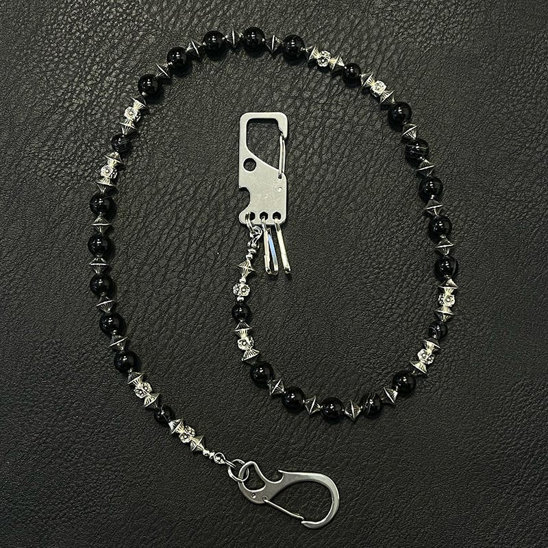 Experience the perfect fusion of dark elegance and urban functionality with this remarkable beaded Wallet Chain. Its unique composition and practical details make it more than just an accessory �it's a wearable expression of individuality that celebrates both mystery and purpose.