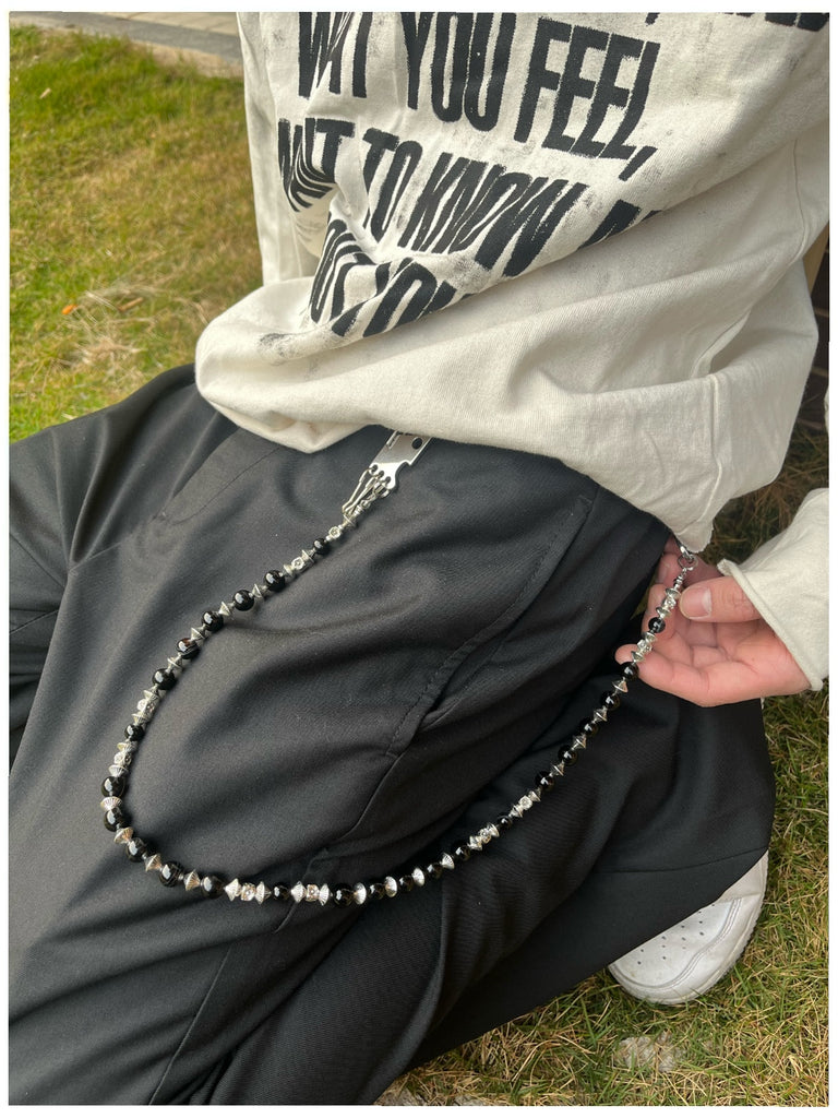 The sophisticated black coloration and unique bead combination make this beaded pants chain particularly appealing to those who appreciate alternative fashion but prefer a more refined aesthetic. Whether you're attending a formal event or expressing your unique style daily, this chain adds a touch of dark elegance to any outfit.