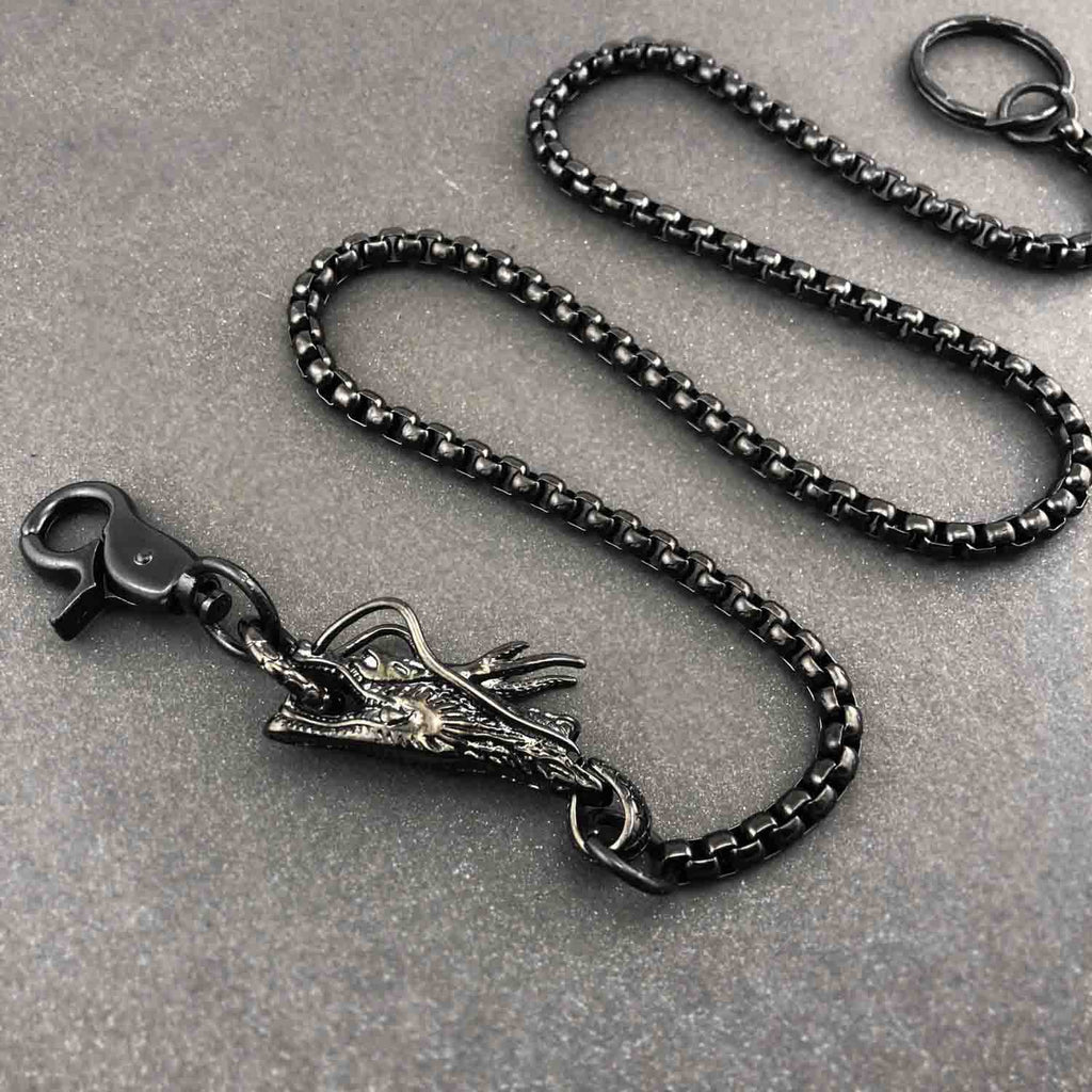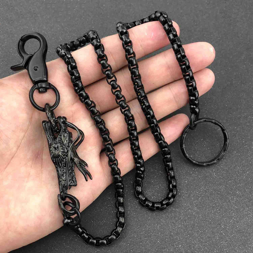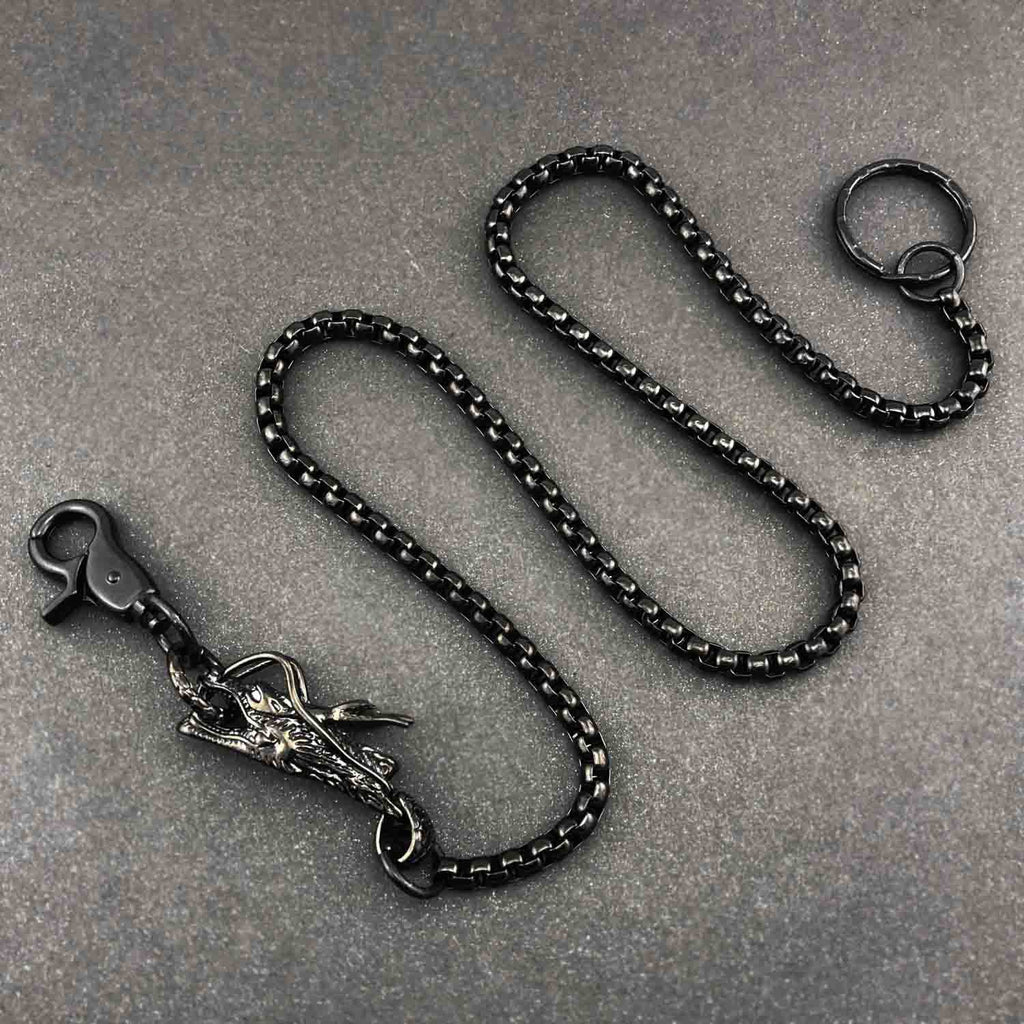 Style: Cool STAINLESS STEEL Mens Black Wallet Chain Long Dragon Pants Chain For Men