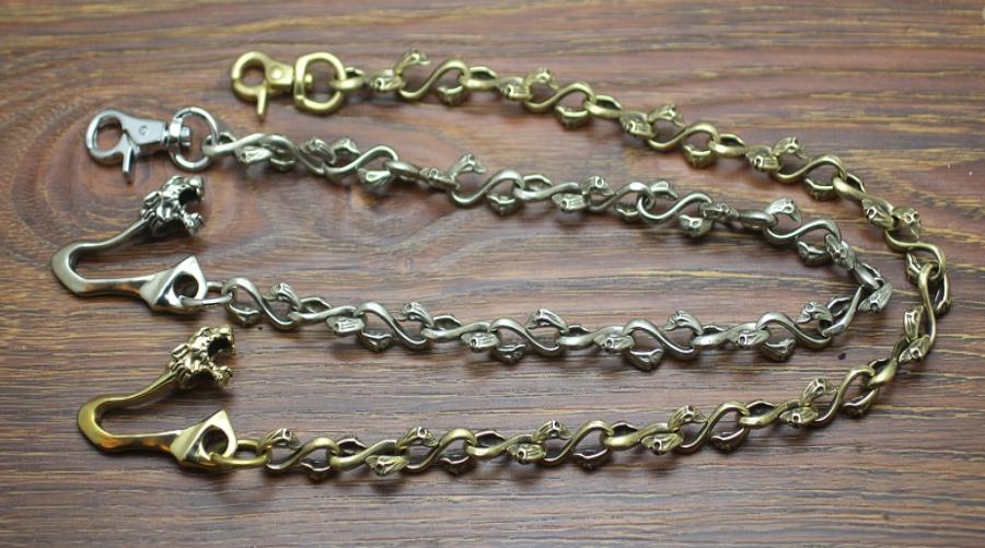 Style: Cool Men's Handmade Dragon Skull Brass Biker Wallet Chain Pants Chain For Men