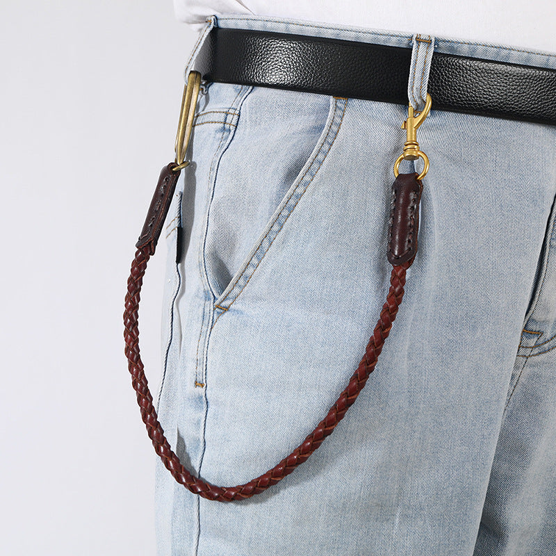 Style: Cool Men's Handmade Leather Braided Pants Chain Biker Wallet Chain For Men