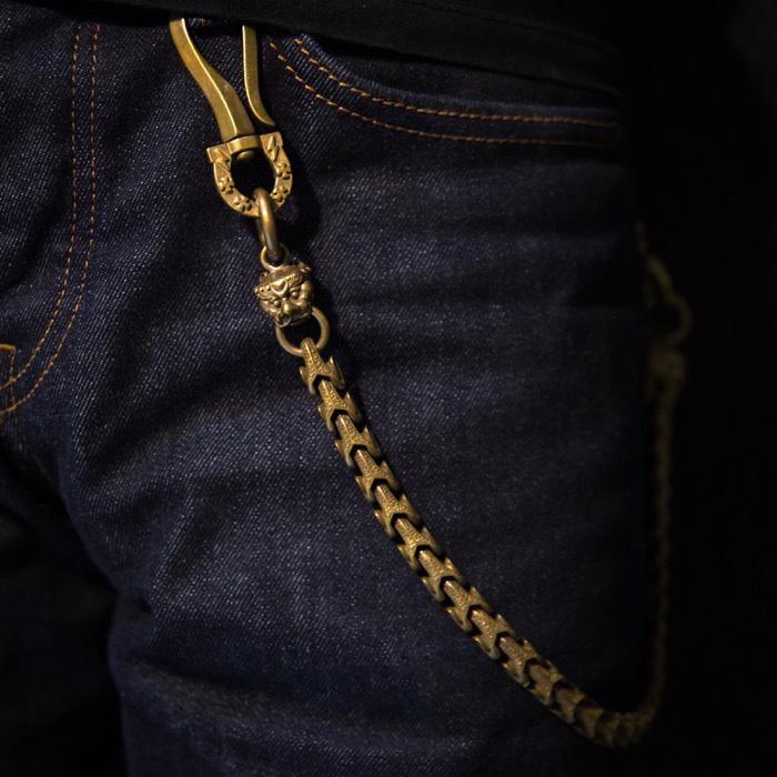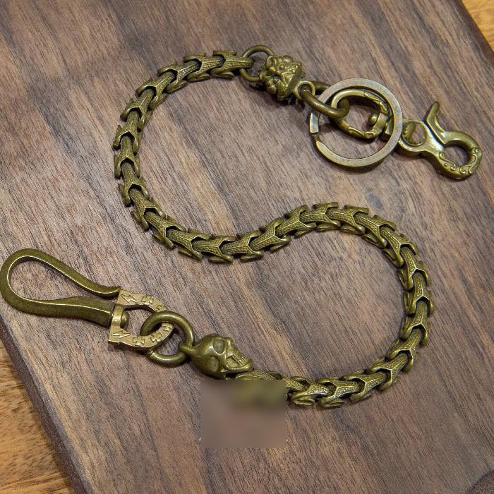 Style: Cool Men's Handmade Python Lion Pure Copper Brass Pants Black Chain Biker Wallet Chains For Men