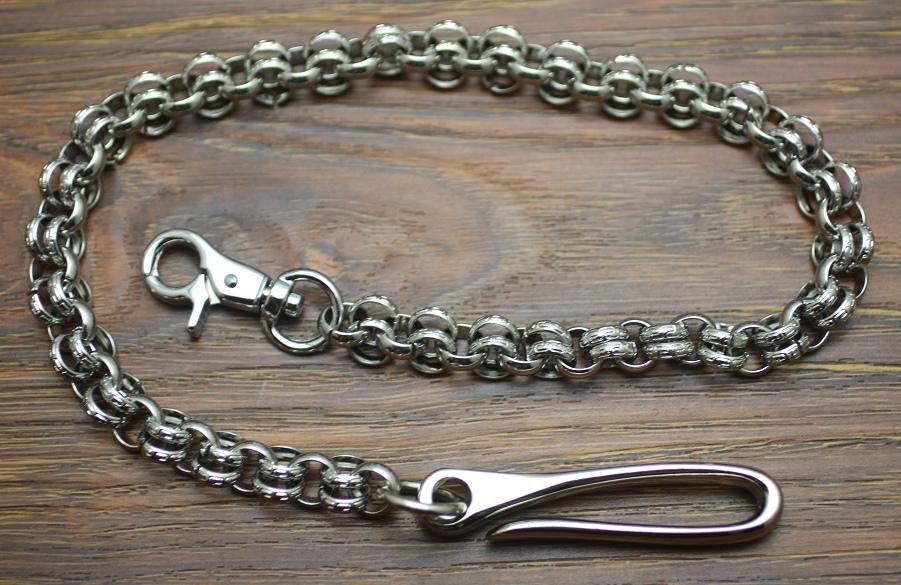 Style: Cool Men's Handmade Stainless Steel Double ring Biker Wallet Chain Pants Chain Wallet Chain For Men