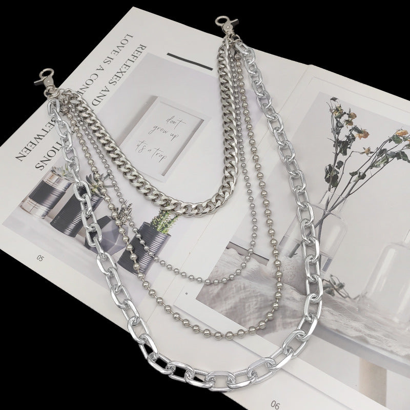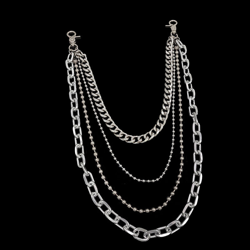 Style: Cool Mens Silver Four Layers Pants Chains Silver Cool Quadruple Biker Wallet Chain For Men<