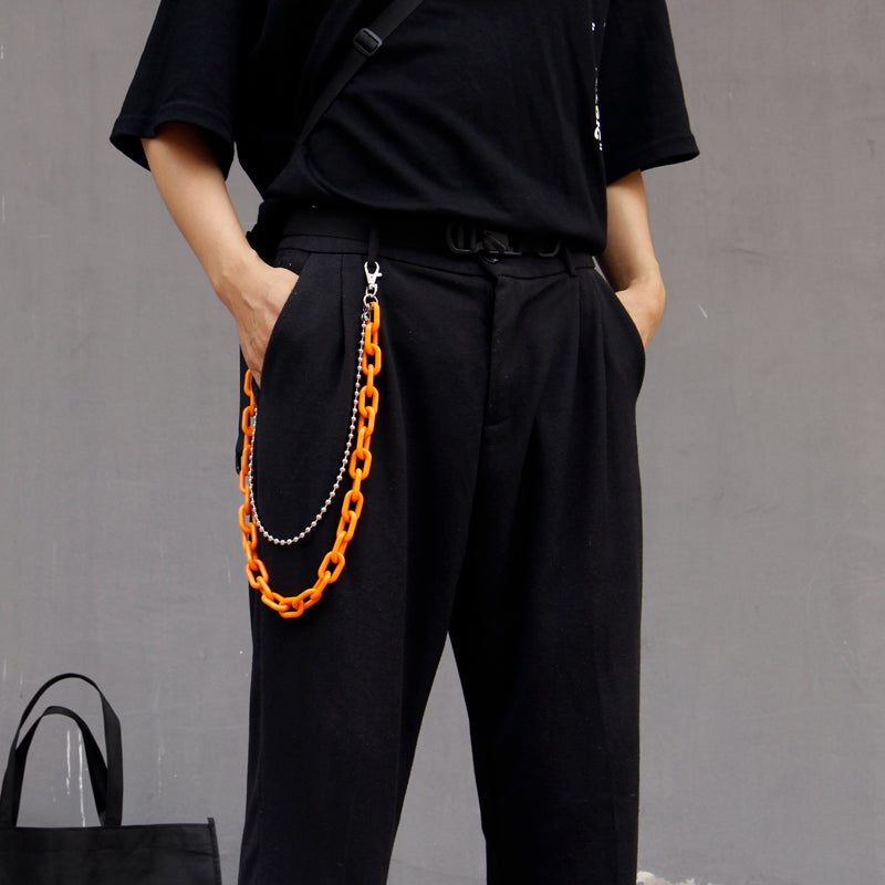 Style:Cute Jeans Chain Silver Colorful Double Layers Resin Light Wallet Chains Panties Chain For Men