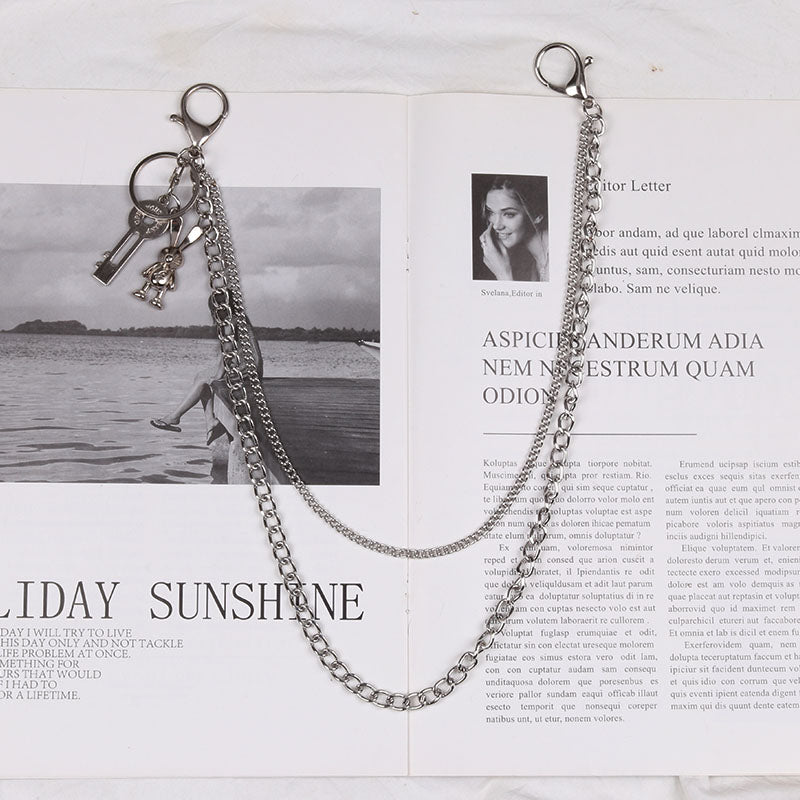 Style: Cute Womens Jeans Chain Brass Double Layers With Bunny Charms Wallet Chains For Women