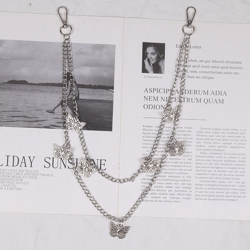Design: Cute Womens Jeans Chains Silver Double Layers With Butterfly Charms Pants Chain For Women