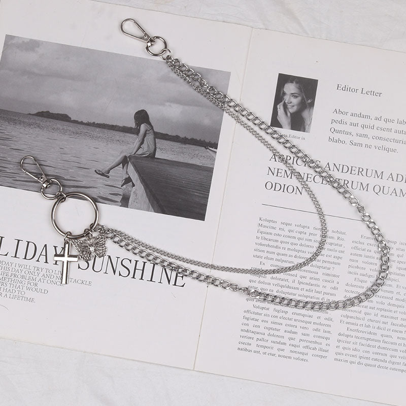 Style: Cute Womens Jeans Chains Silver Double Layers With Butterfly Charms Pants Chain For Women