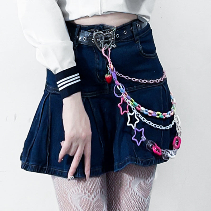 Style: Cute Womens Plastics Four Layers Pants Chain Colorful Light Jeans Chains For Women