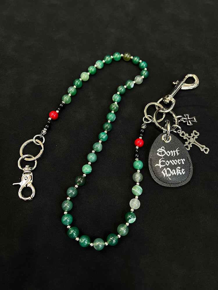 Style: Green Ball Wallet Chain Ball Pants Chain Jade Stone Beaded Wallet Chain Bead Wallet Chain