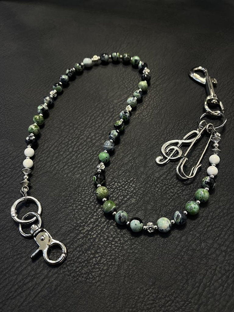 Style: Green Stone Bead Wallet Chain Long Green Beaded Wallet Chain