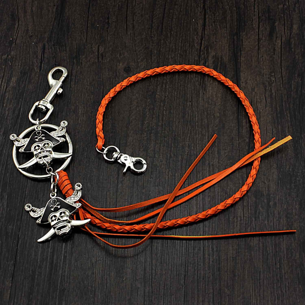 Handmade Braided PIRATE SKULL Leather Cool Punk Rock Wallet Chain Biker Trucker Wallet Chain Trucker Wallet Chain for Men