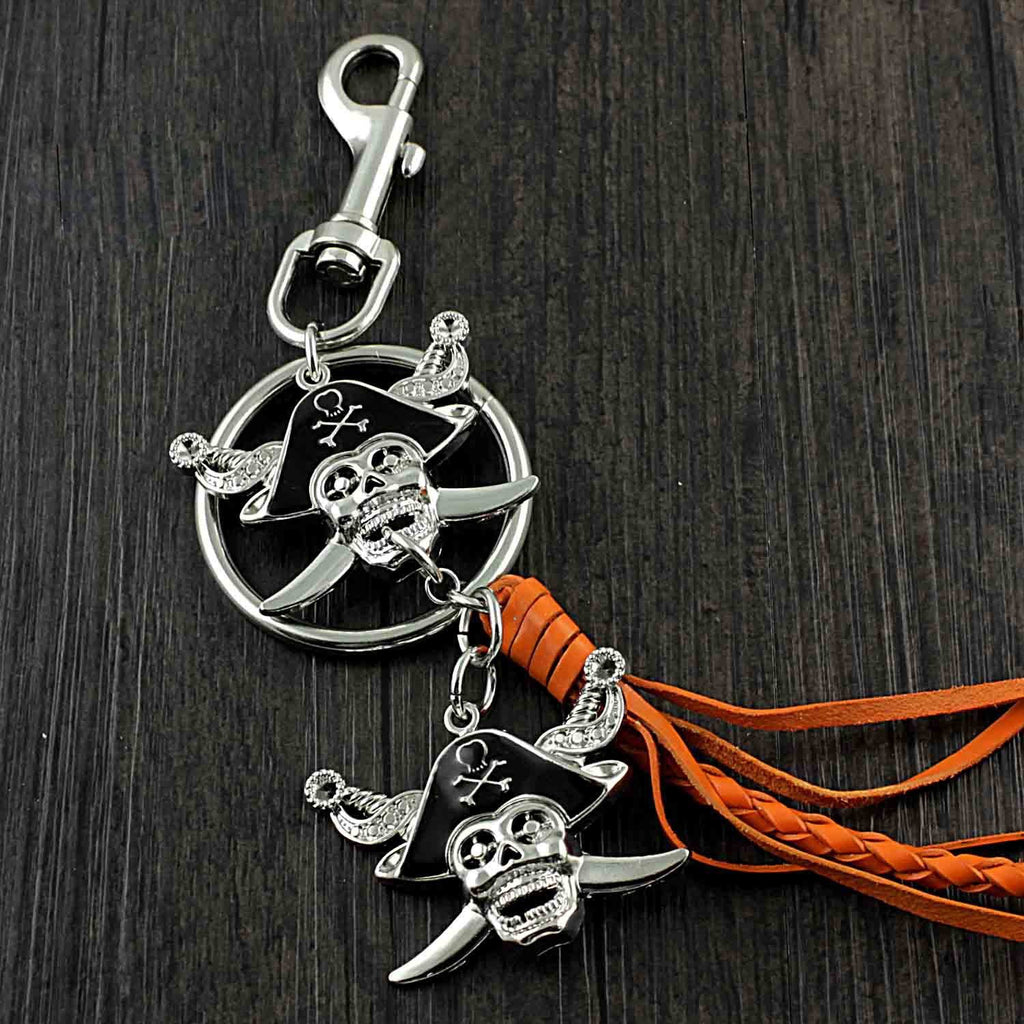 Design: Handmade Braided PIRATE SKULL Leather Cool Punk Rock Wallet Chain Biker Trucker Wallet Chain Trucker Wallet Chain for Men