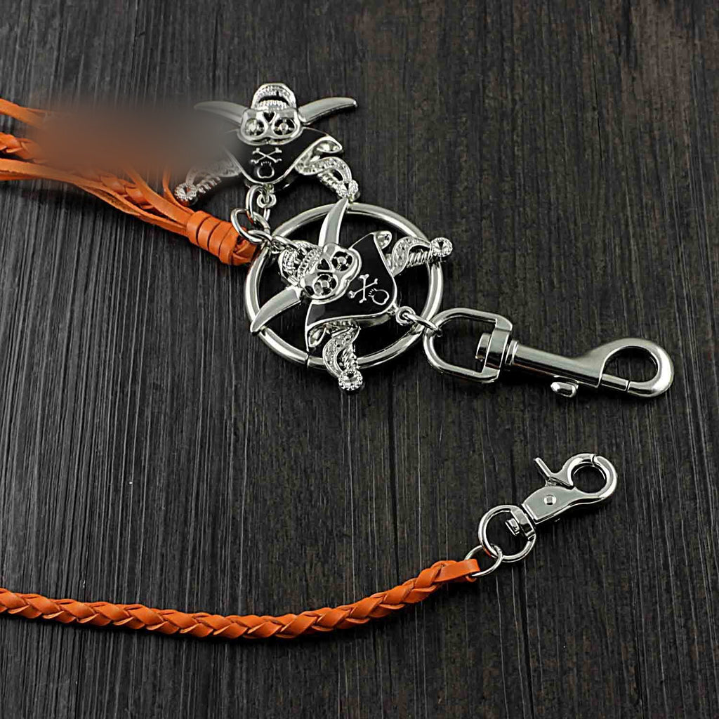 Style: Handmade Braided PIRATE SKULL Leather Cool Punk Rock Wallet Chain Biker Trucker Wallet Chain Trucker Wallet Chain for Men