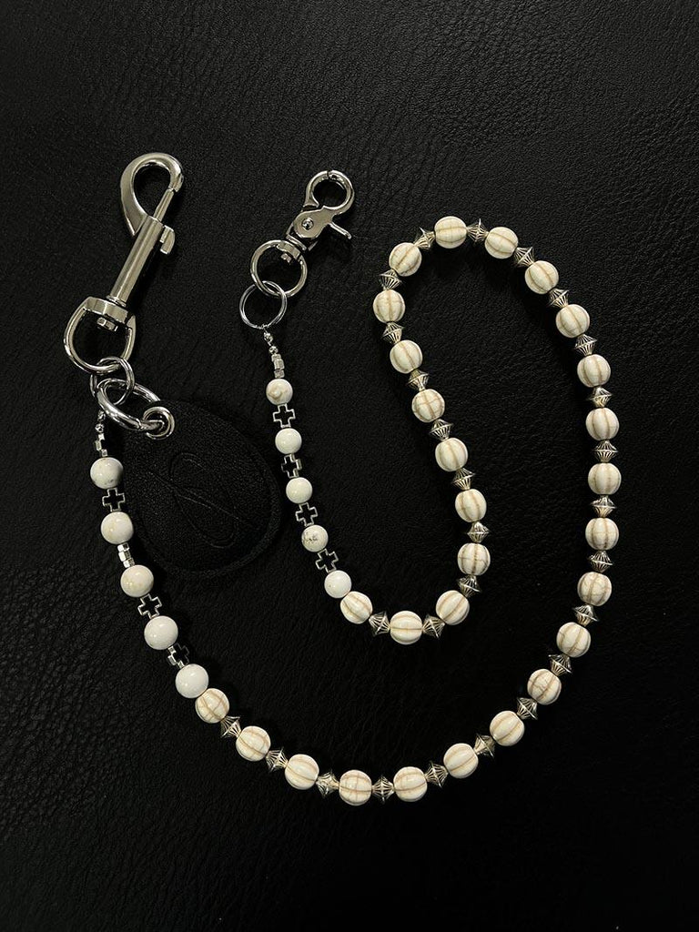 Design: White Ball Wallet Chain Long Ball Pants Chain Turquoise Stone Beaded Wallet Chain Bead Wallet Chain