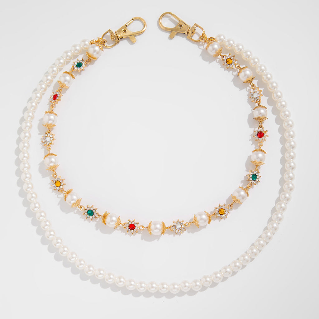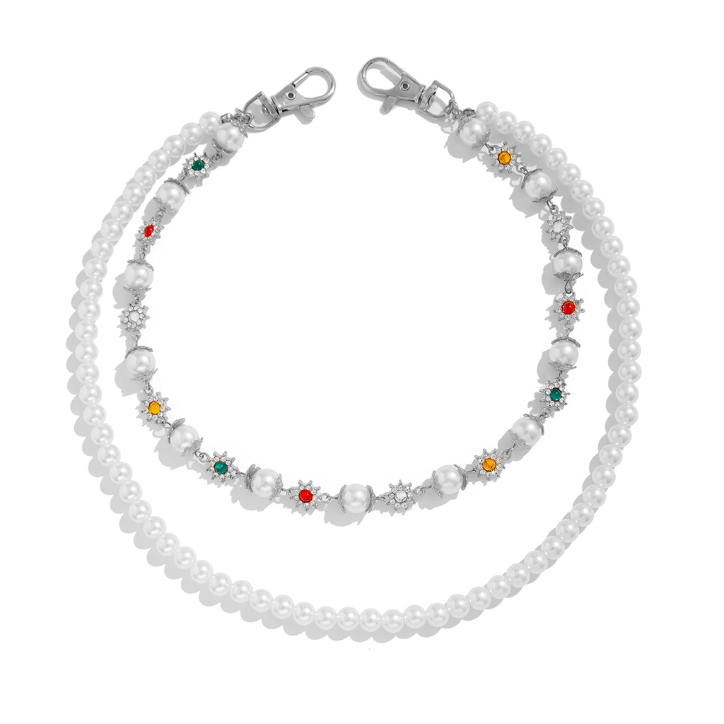 The beauty of this Double Wallet Chain lies in its versatility. The pearl strand offers classic elegance, while the floral-accented chain adds a contemporary romantic touch. Whether you're dressing for the office, a casual outing, or a special event, this Women Wallet Chain adapts seamlessly to your style, making it a valuable addition to any accessory collection.