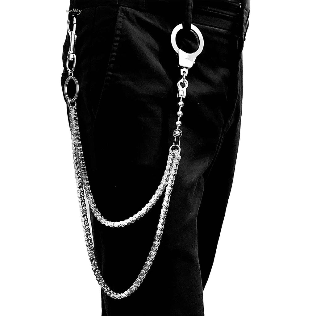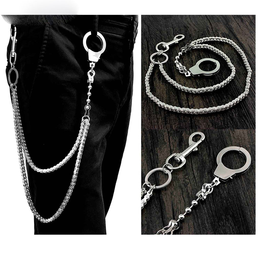 Design: BADASS SILVER STAINLESS STEEL MENS Double CHAIN PANTS CHAIN WALLET CHAIN BIKER WALLET CHAIN FOR MEN
