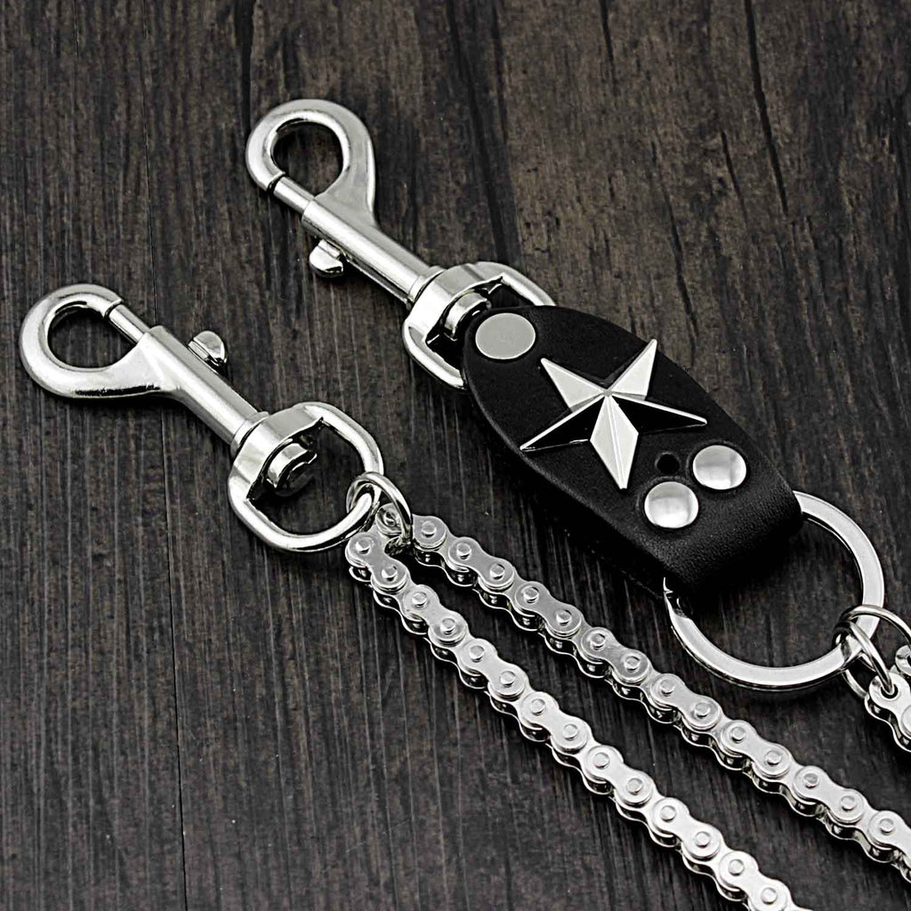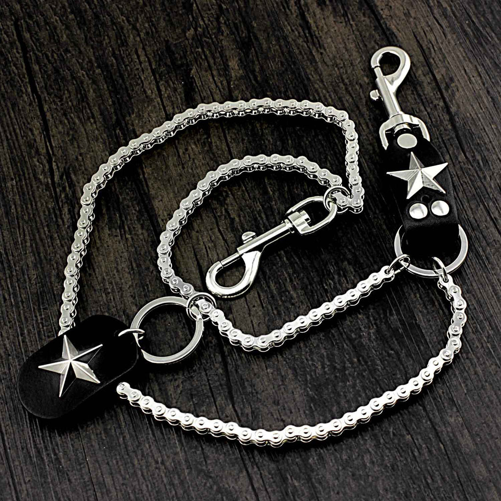 Style:Star SILVER STAINLESS STEEL MENS Double CHAIN PANTS CHAIN WALLET CHAIN BIKER WALLET CHAIN FOR MEN