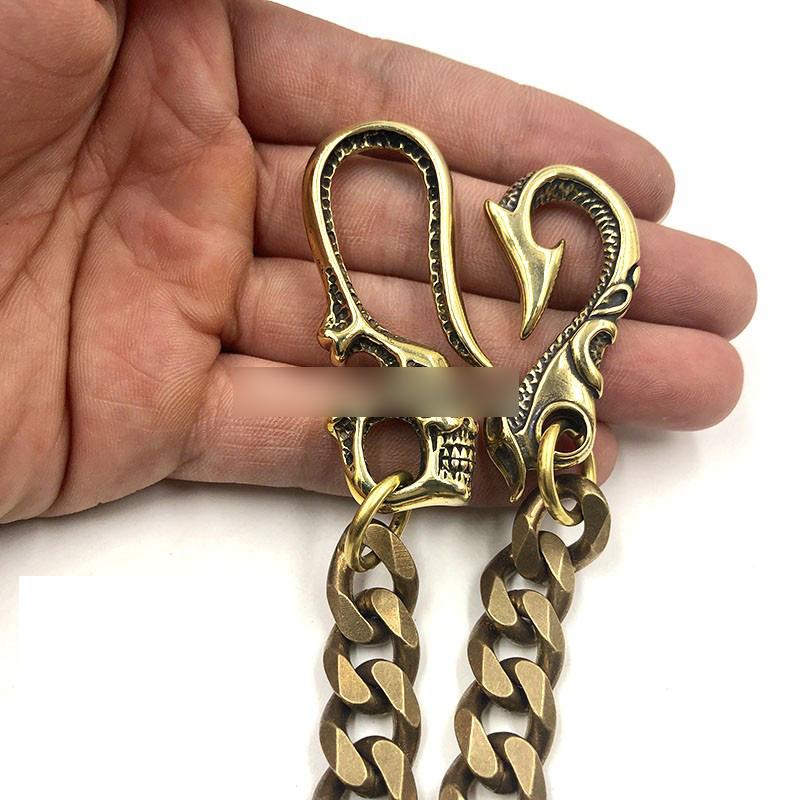 Design: Badass Gold Brass Skull 22'' Long Wallet Chain Biker Trucker Wallet Chain Pants Chain for Men