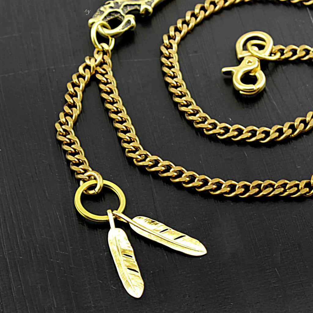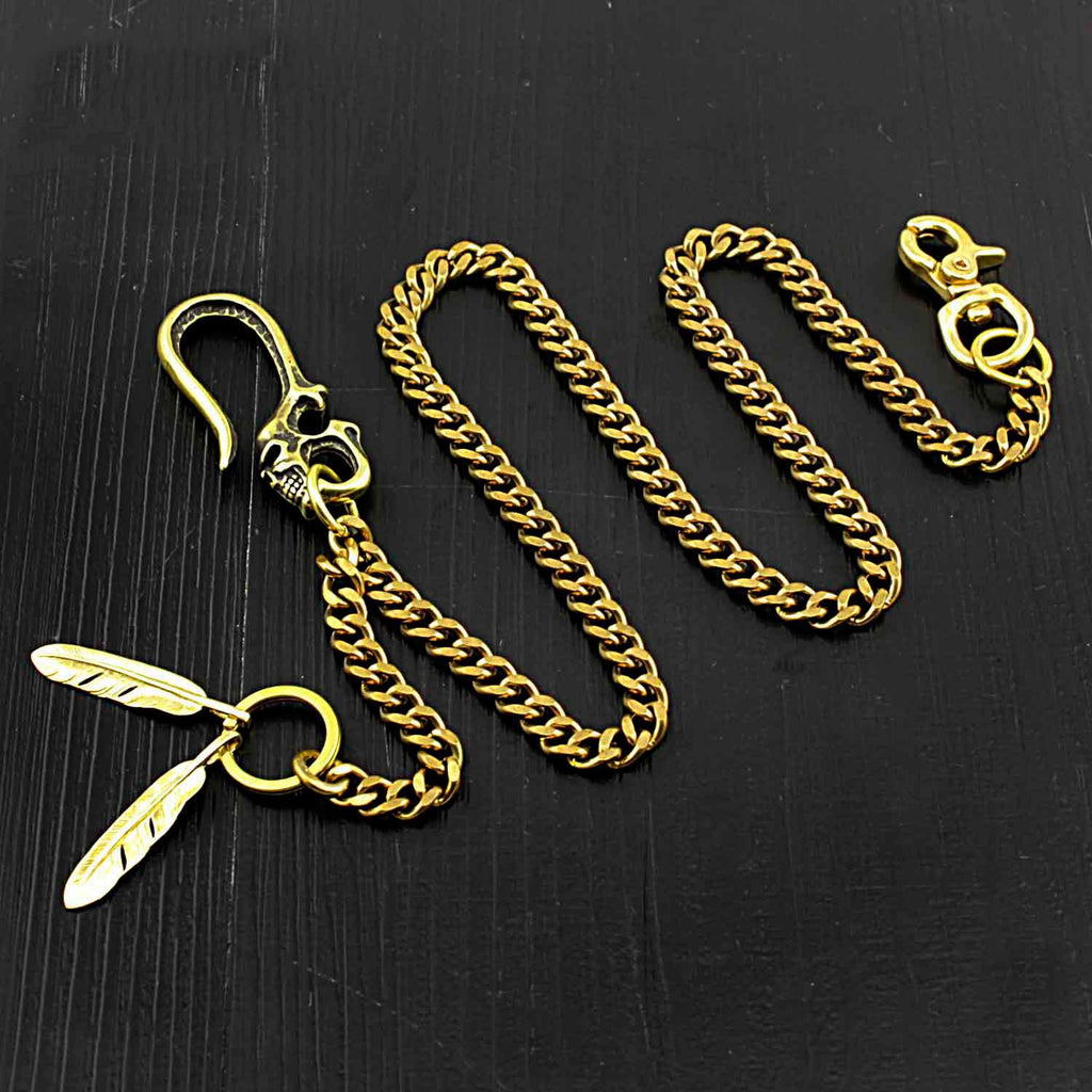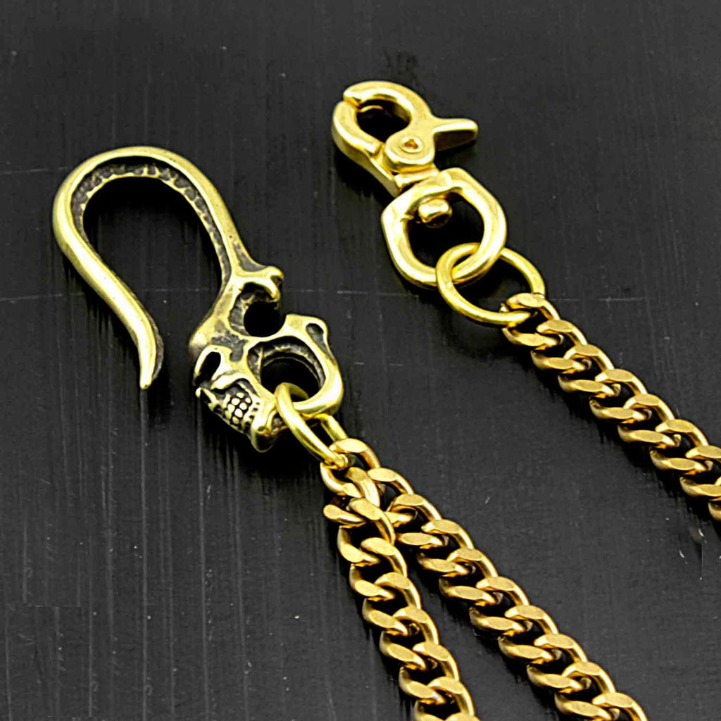 Design: Brass Skull Wallet Chain Long Biker Wallet Chain Gold Cool Pants Chain For Men