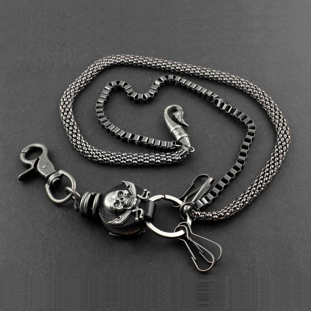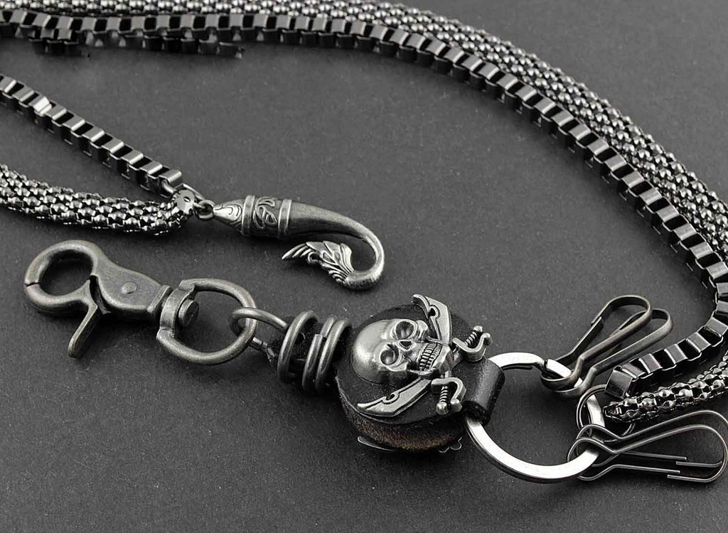Design:? Solid Metal Leather Skull Wallet Chain Cool Punk Rock Biker Trucker Wallet Chain Trucker Wallet Chain for Men