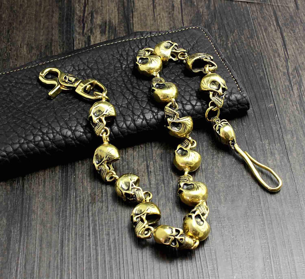 Solid Stainless Steel Brass Skull Wallet Chain Cool Punk Rock Biker Trucker Wallet Chain Trucker Wallet Chain for Men
