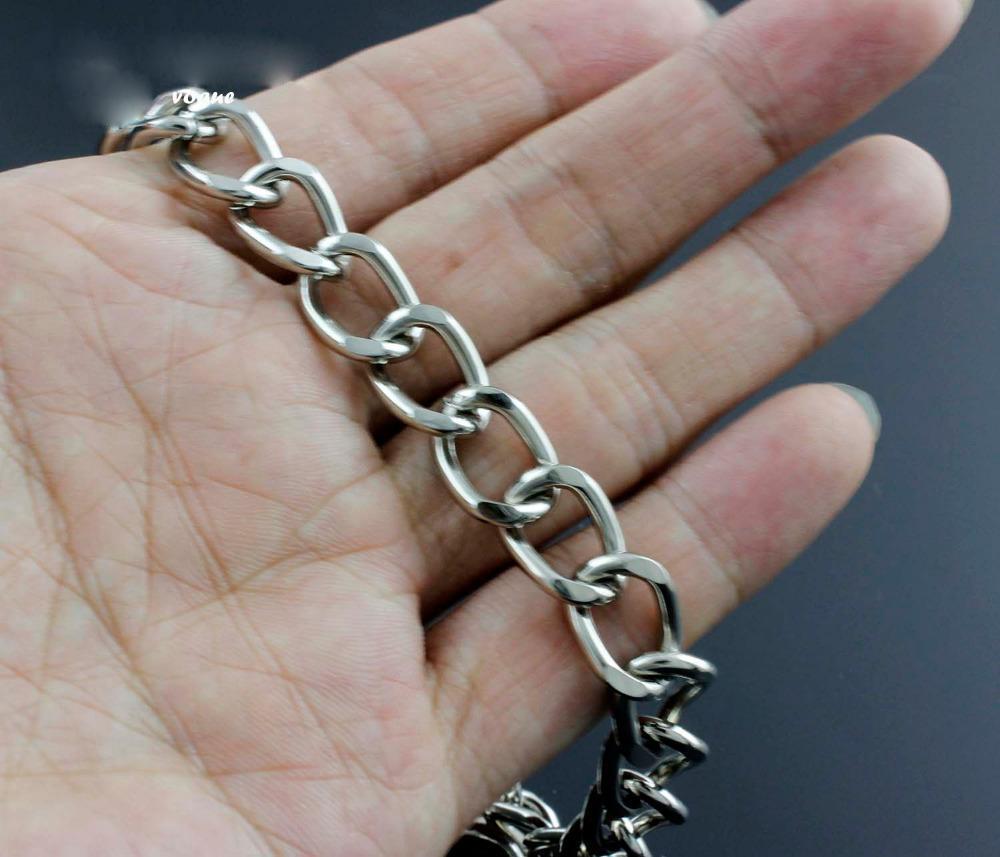 One of the key features of this wallet chain is its simplicity. The minimalist design means it can easily be paired with different types of wallets, especially biker wallets and chain wallets, enhancing their functionality and aesthetic appeal. The clean lines and polished silver finish give the chain a timeless look that can seamlessly blend with various outfits, whether you're aiming for a rugged biker style or a rebellious punk vibe.