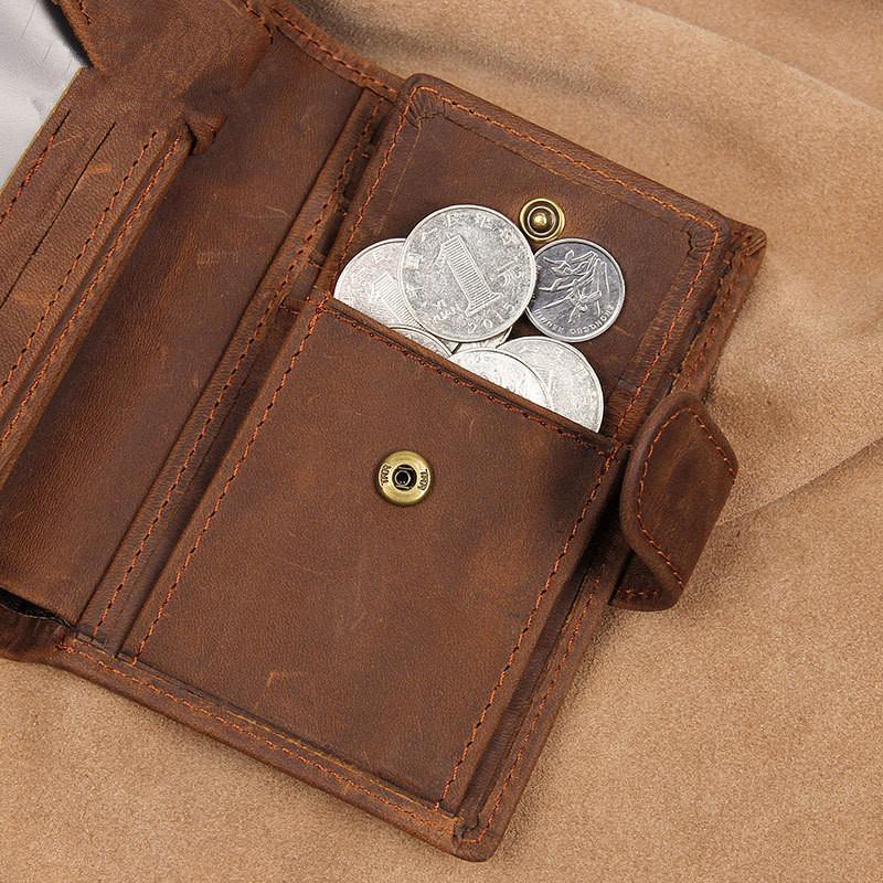 Style: RFID Vintage Leather Men's Trifold Small Wallet Brown billfold Wallet For Men