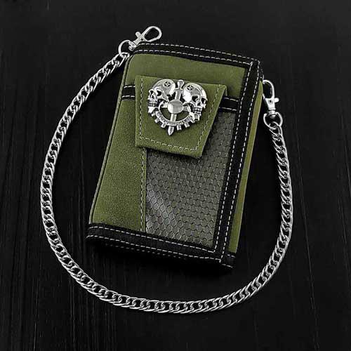 Design: BADASS ARMY GREEN LEATHER MENS TRIFOLD SMALL BIKER WALLETS CHAIN WALLET WALLET WITH CHAINS FOR MEN