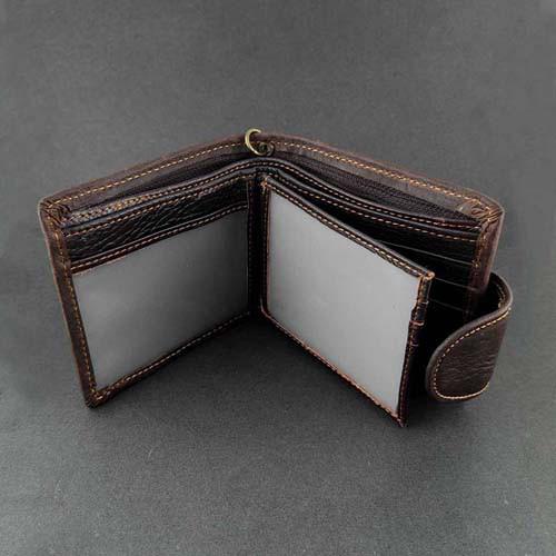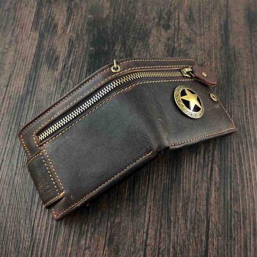 Design: Badass Dark Brown Leather Men's Bifold Small Biker Wallet Chain Wallet Wallet with chain For Men