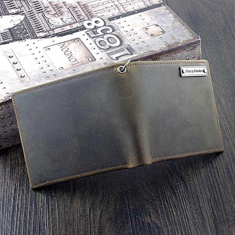 Design: Badass Dark Brown Leather Men's Bifold Small Biker Wallets Chain Wallet Wallets with chain For Men