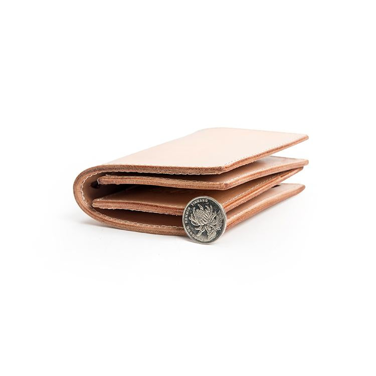 Style: Beige Handmade Leather Mens billfold Wallet Bifold Card Wallets Coin Purse For Men