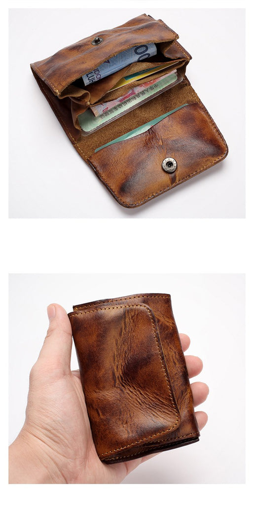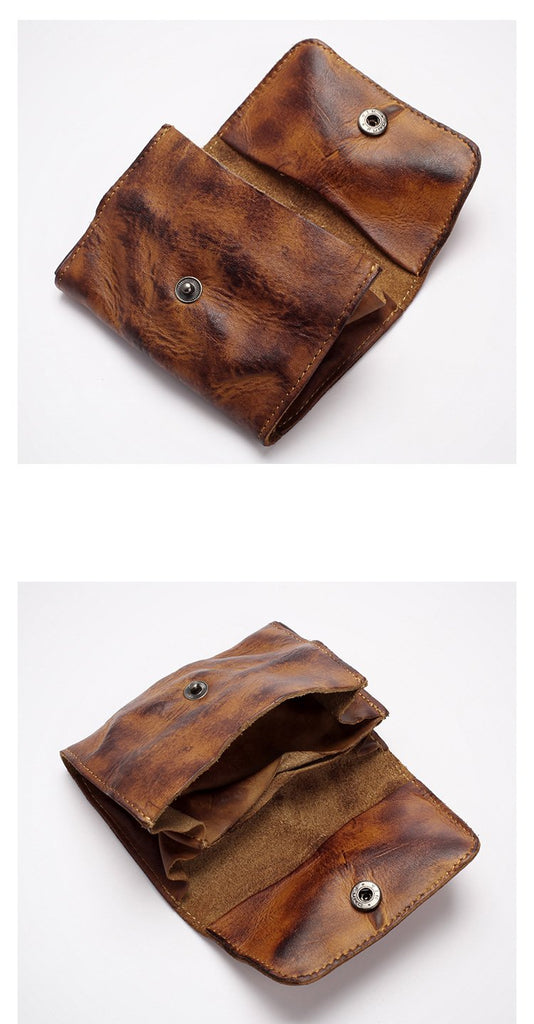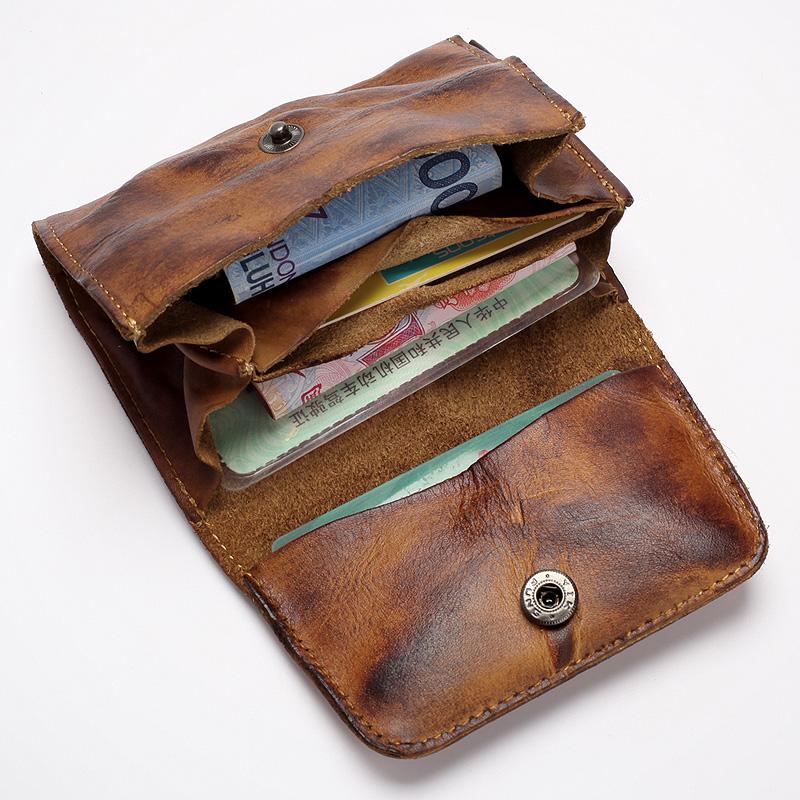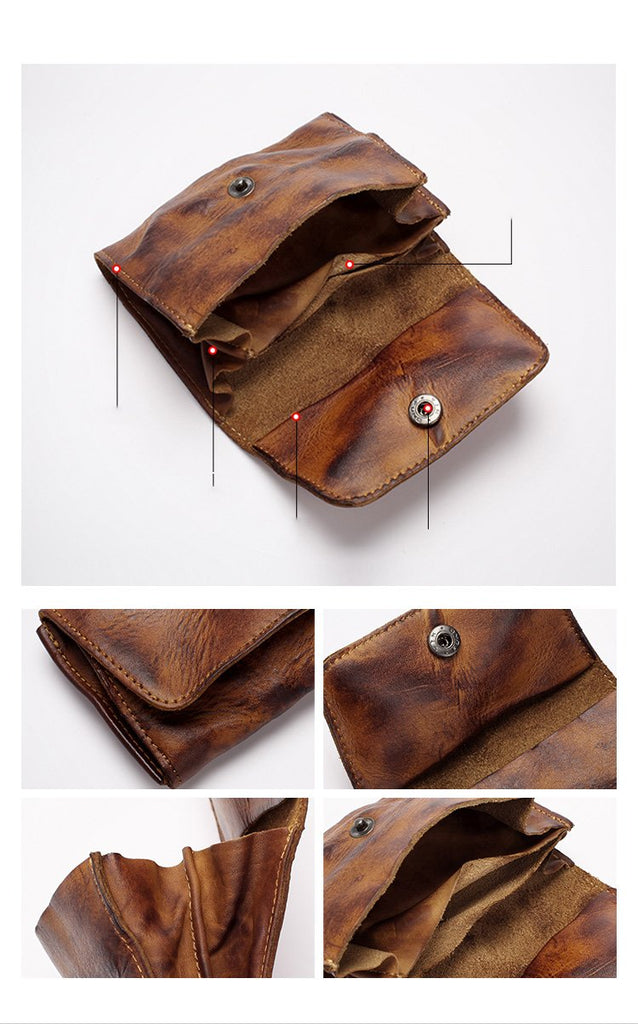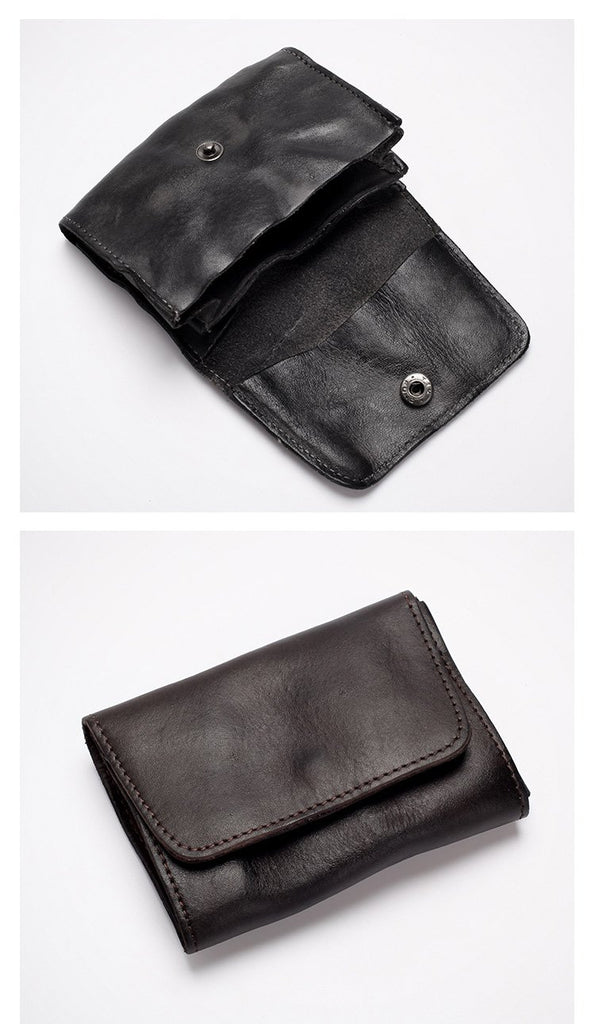 Style: Black Handmade Leather Mens Coin Purse Small Wallet billfold Wallet Card Wallet For Men