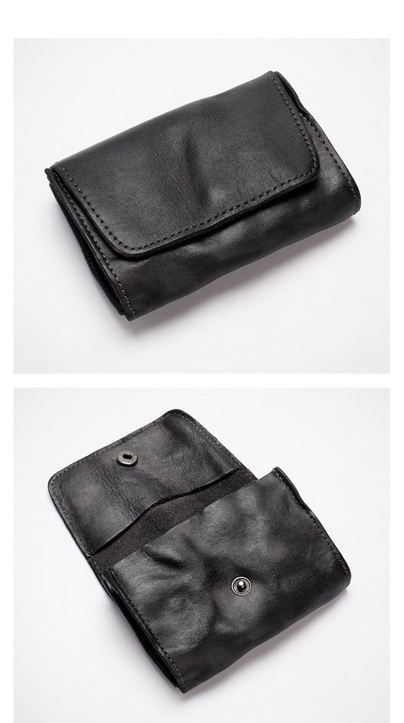 Black Handmade Leather Mens Coin Purse Small Wallet billfold Wallet Card Wallet For Men