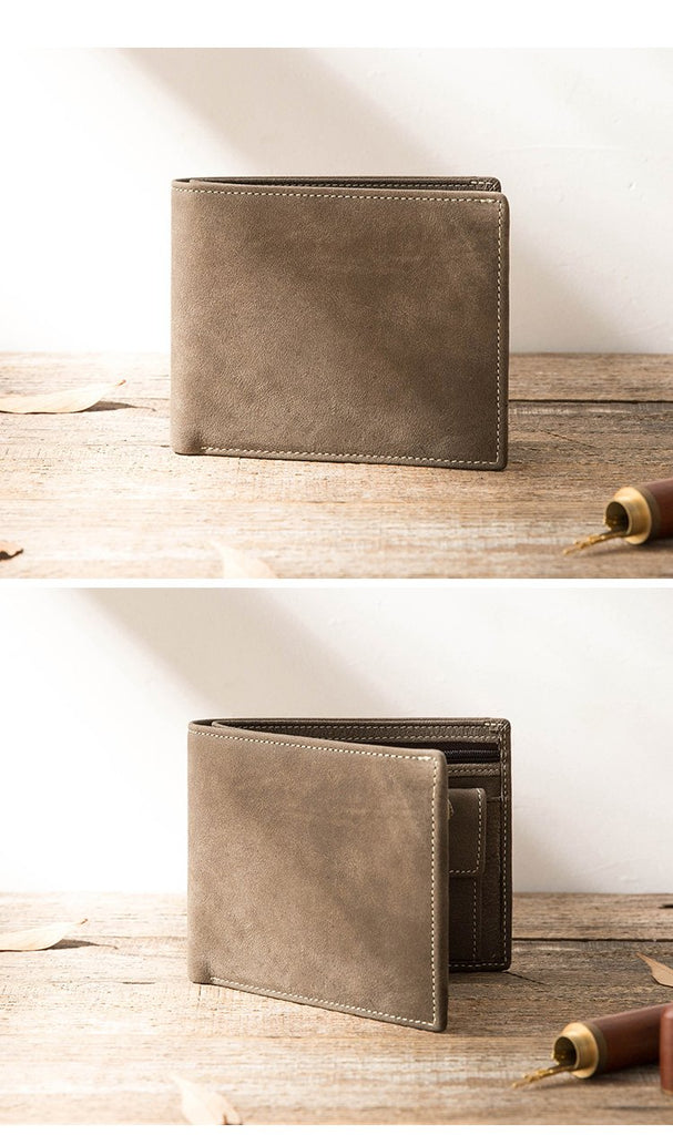 Style: Black Handmade Leather Mens Small Wallet Gray Card Wallet Front Pocket Wallet billfold Wallet for Men