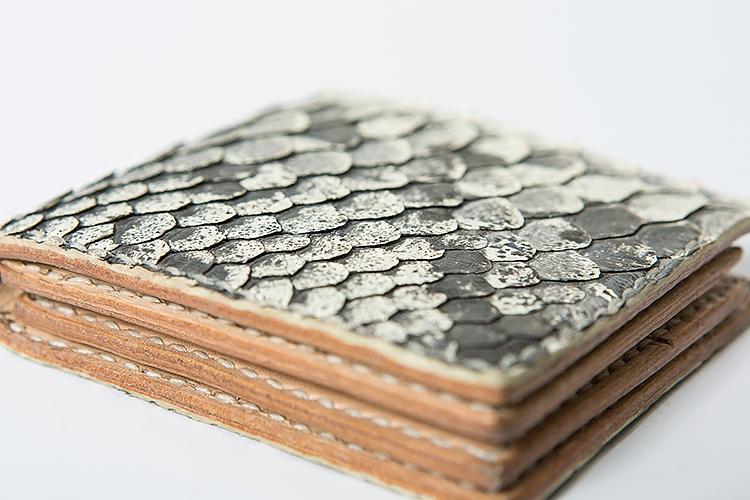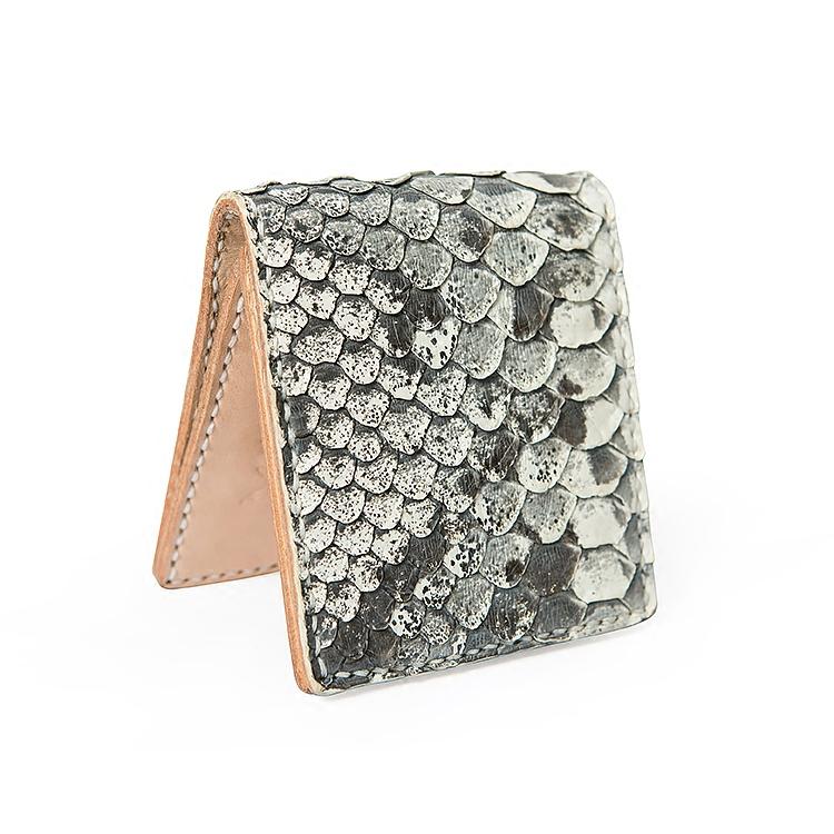 Design: Black Handmade Leather Mens Snakeskin billfold Wallet Bifold Card Wallet Coin Purse For Men