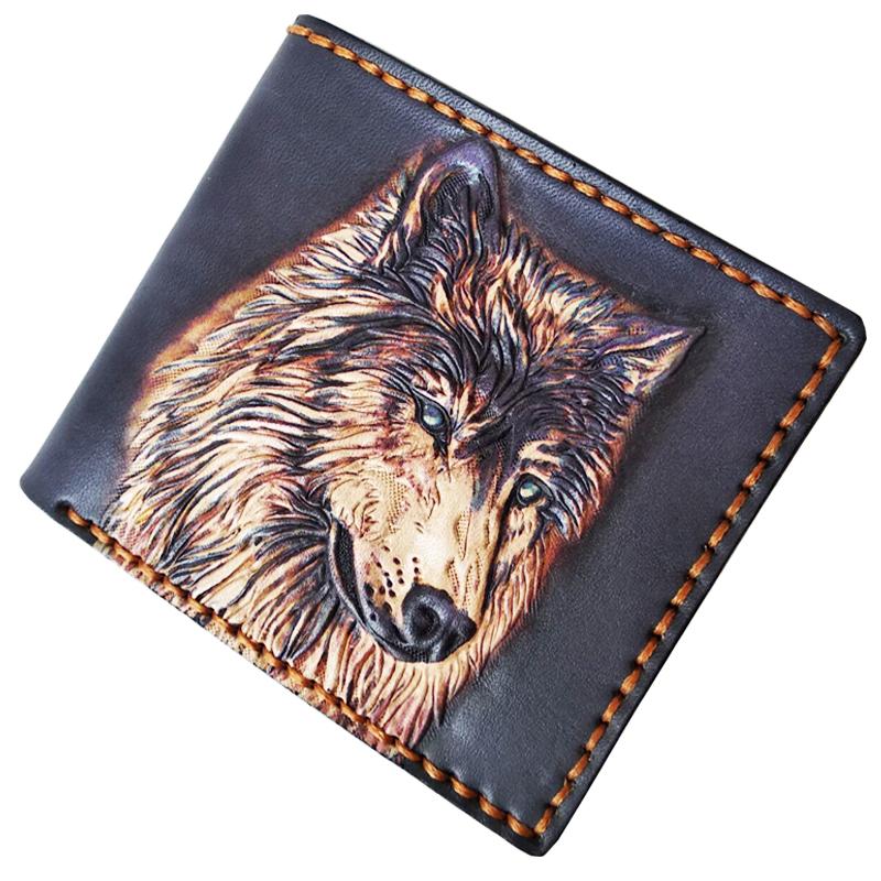 Style: Handmade Wolf Black Tooled Leather billfold Wallet Small Wallet Cool Wallet For Men