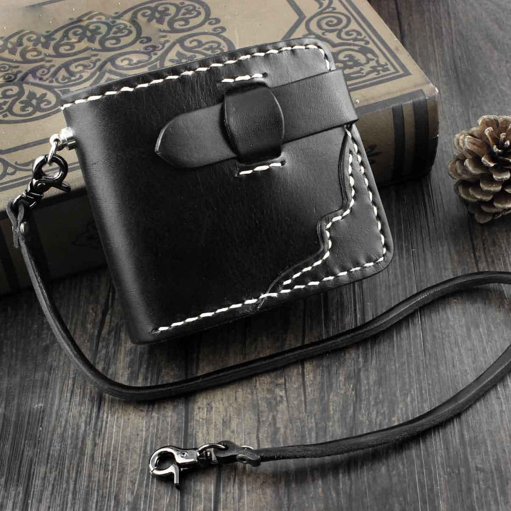 Style: Handmade Black Leather Men's Small Biker Wallet Chain Wallet billfold Wallet with Chain For Men