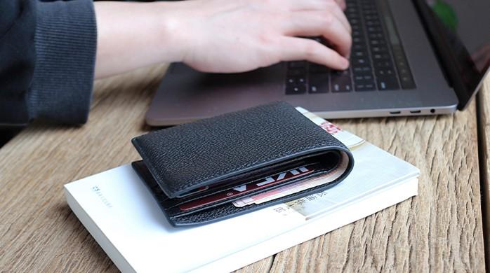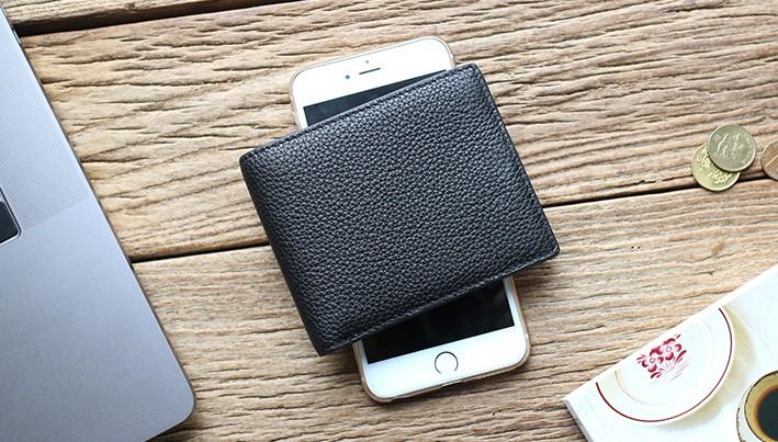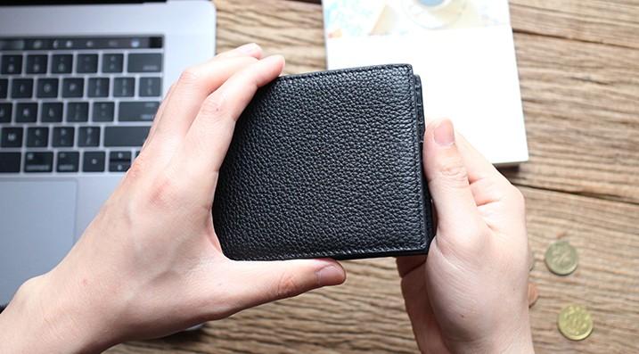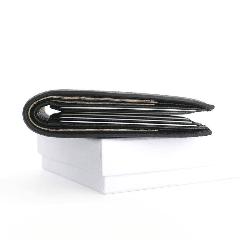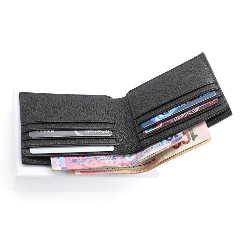 Design: Black Leather Mens Bifold Small Wallet Front Pocket Wallet Slim Small Wallet for Men