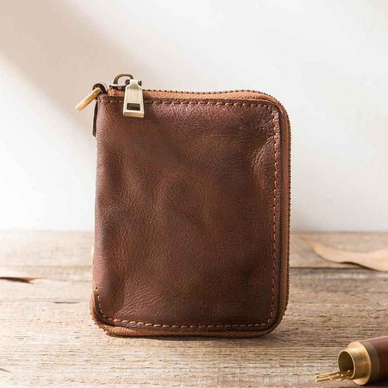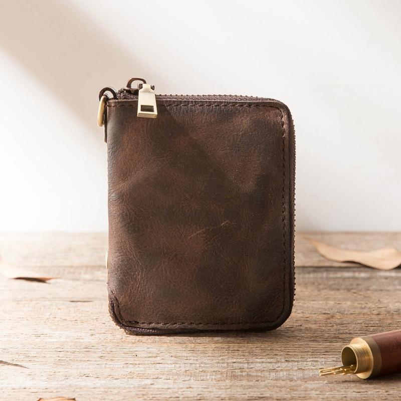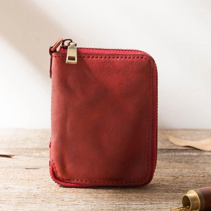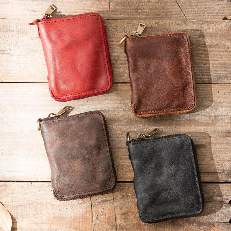 Style: Black Leather Mens Small Card Wallet Red Brown Key Holder Brown Coin Purse For Men