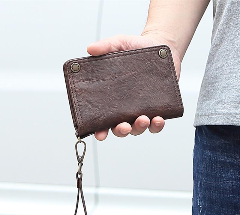 Design: Black Small MENS LEATHER SLIM ZIPPER CLUTCH WRISTLET Brown PURSE BAG CLUTCH BAG FOR MEN