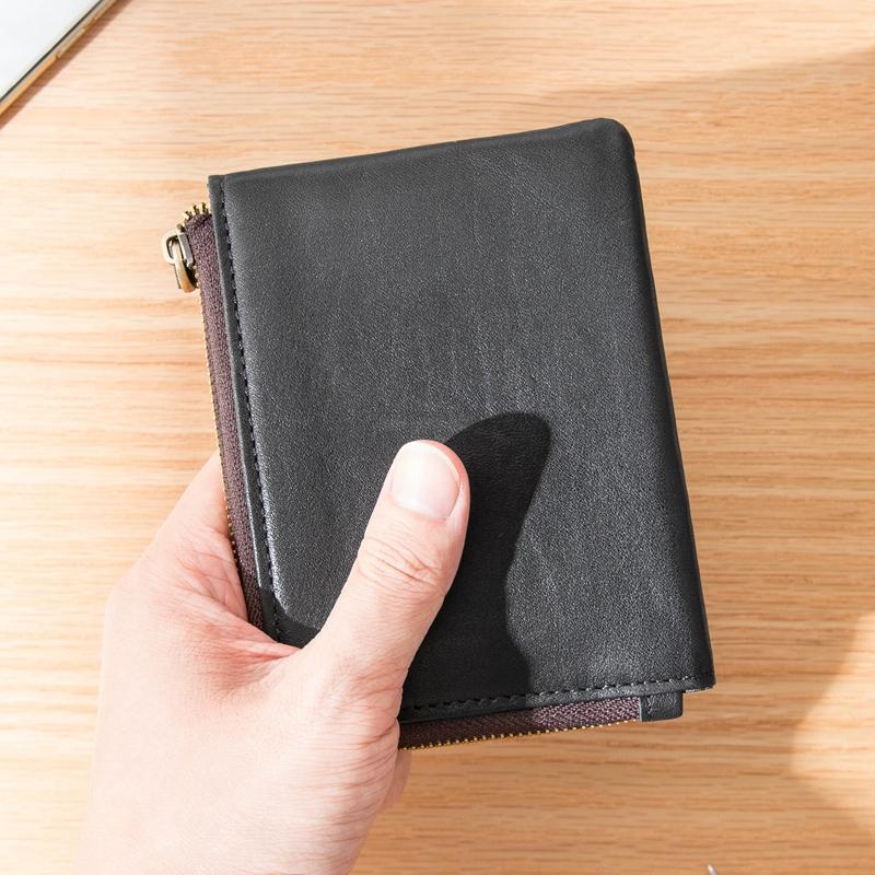 Design: Black Soft Leather Mens Small Wallet Brown Coin Purse Wallet Ultra Thin billfold Wallet for Men