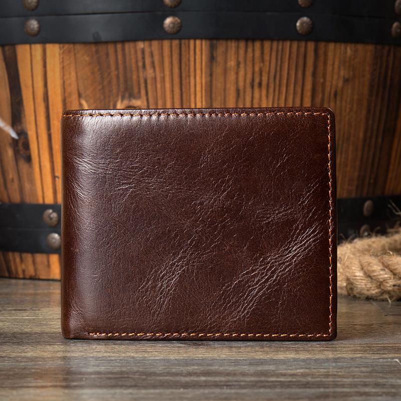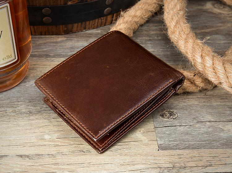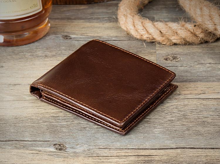 Design: Brown Cool Leather Mens Card Holder Thin Front Pocket Wallet Trifold Slim Card Wallets for Men