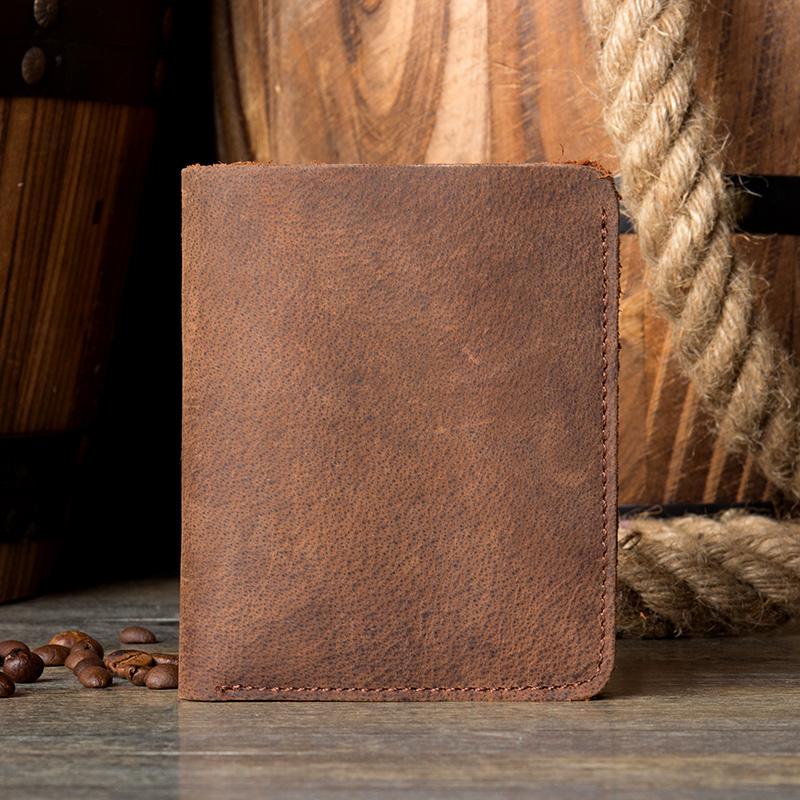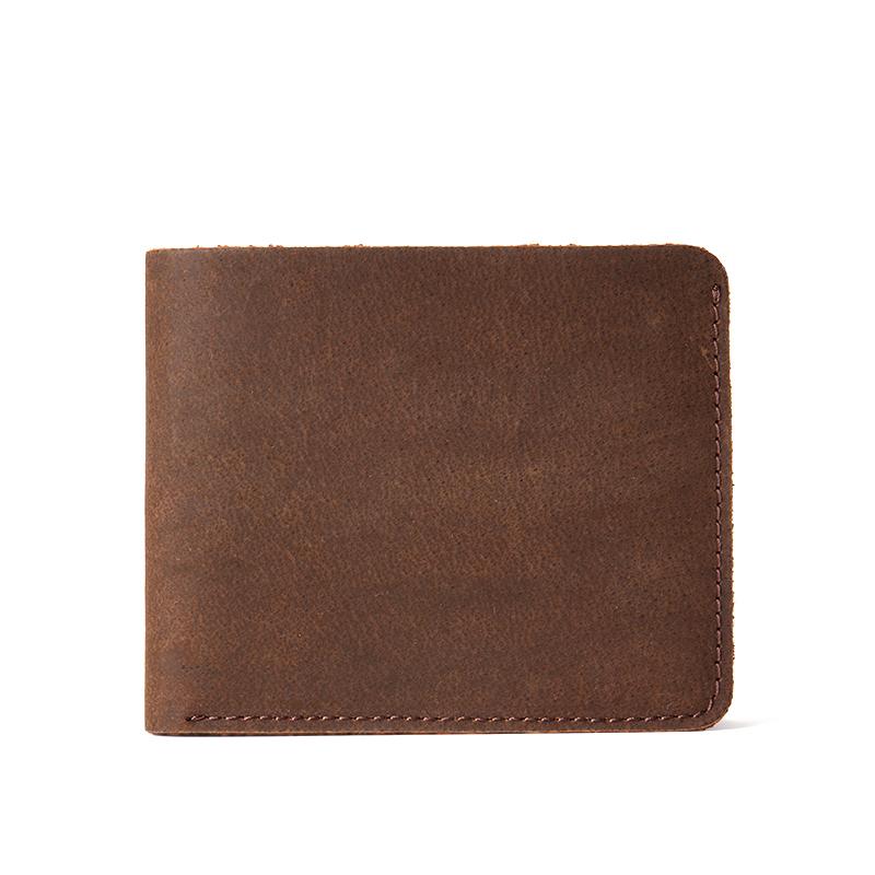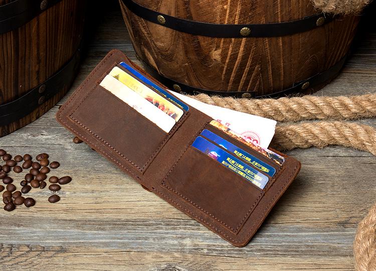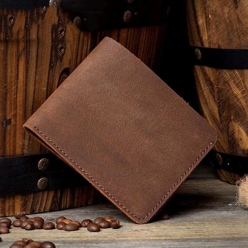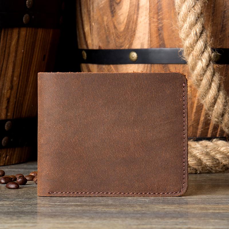 Brown Cool Leather Mens Bifold Small Wallet Thin Front Pocket Wallets Slim billfold Wallet for Men
