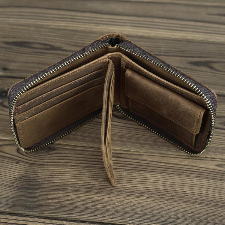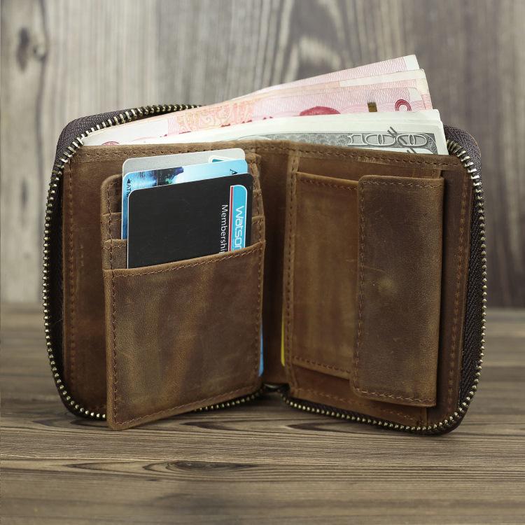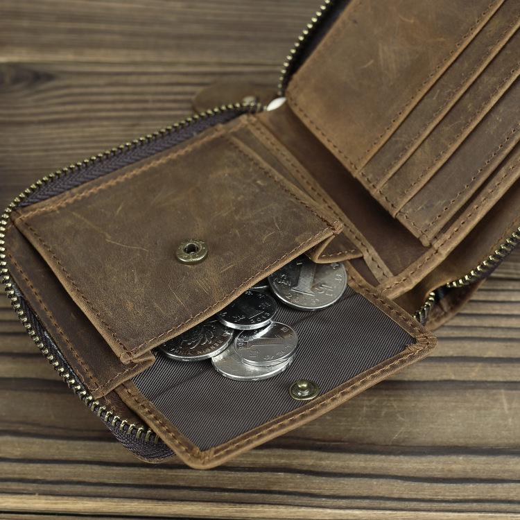 Design: Brown Leather Men Billfold Wallet Leather Black Vertical Bifold Wallet with Coin Pockets For Men