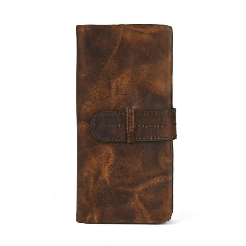 Discover the perfect blend of rugged functionality and vintage aesthetics with our distinctive Leather Wallet with Buckle, offering two versatile styles to suit your daily needs. This collection features both long and short designs crafted from premium brown cowhide leather, each equipped with a practical buckle closure that ensures security while adding a touch of old-world charm. Whether you prefer the expanded capacity of our long wallet or the compact efficiency of our short version, these Buckle Mens Wallets deliver the same exceptional quality and masculine style in two perfectly proportioned formats.