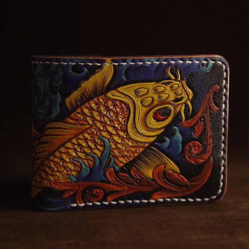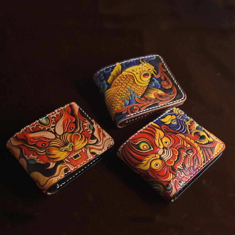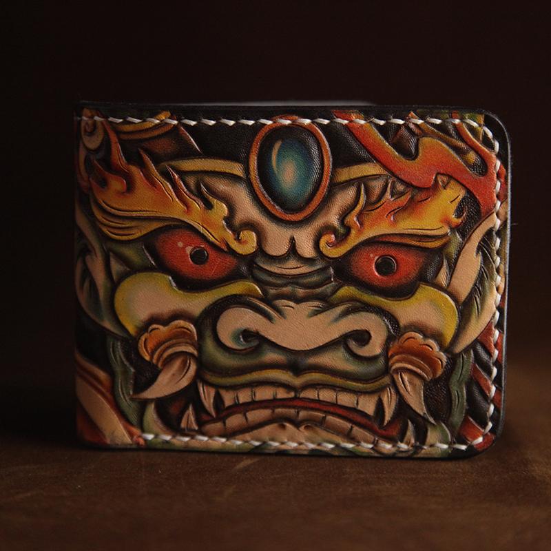 Design: Handmade Tooled Leather Mens Skull billfold Wallets Bifold Wallet Small Wallet For Men